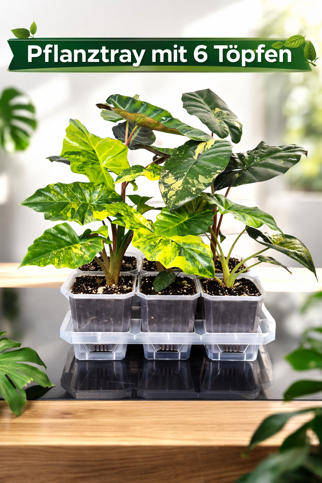 Pflanztray mit 6 eckigen Töpfen – inklusive integrierter Abtropfschale